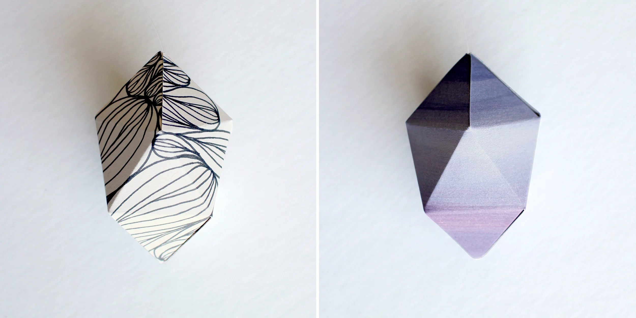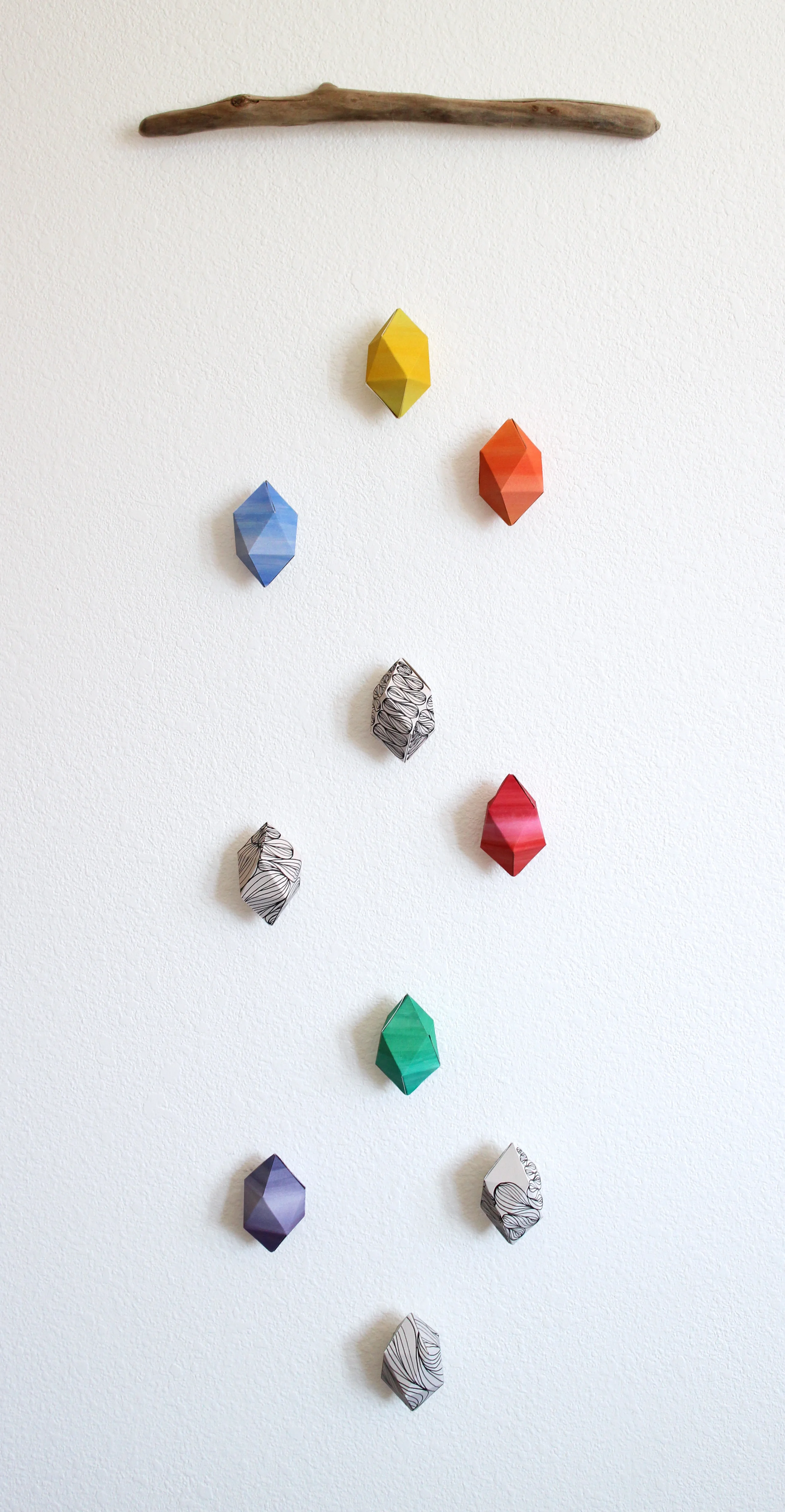 Don't let the picture fool you. This is not a cat toy. I used my geometric ornament template to make a mobile as a baby gift. I combined the gift making with my current 100 Day Project by using my tangle pattern Onion Drops. For the colorful paper gems I used a watercolor wash.